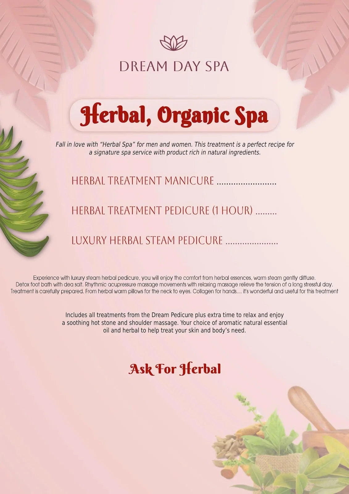 At Dream Day Spa, you will enjoy the luxury you will find your most relaxing moments. Enjoy the serene environment as friendly, caring, thorough ans expert technicians tend to your needs. We offer full services from beauty to help you relieve stress. Dream Day Spa’s goal is to leave each client feeling stress-free and rejuvenated by the end of your visit. The Dream day spa ..motto is Taking care of you is our responsibility.